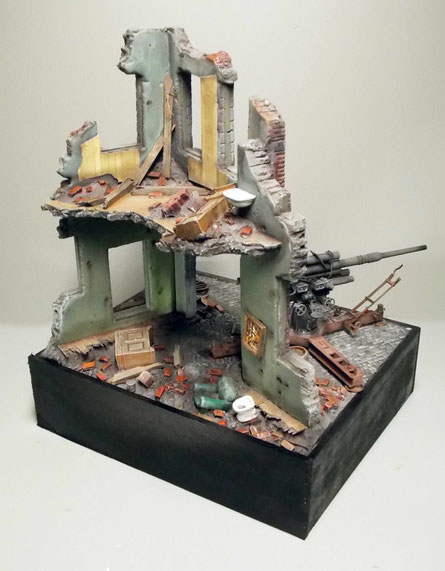 Als Basis dient eine Gipsruine mit einem schönen Torbogen, in dem die Flak einen repräsentativen Platz findet. Hier fehlen jetzt noch entsprechende Figuren, mit denen wir uns dann im letzten Schritt beschäftigen.