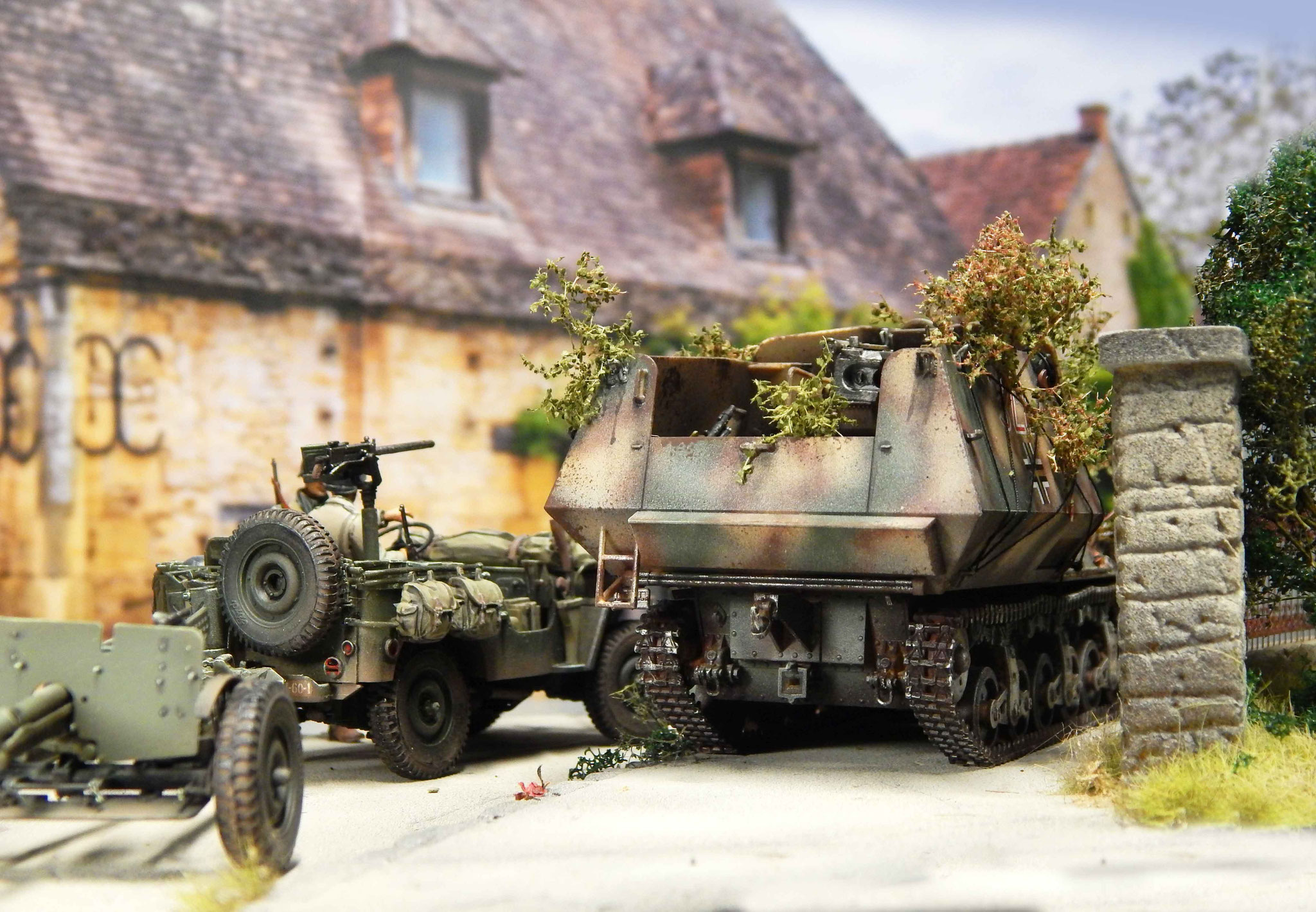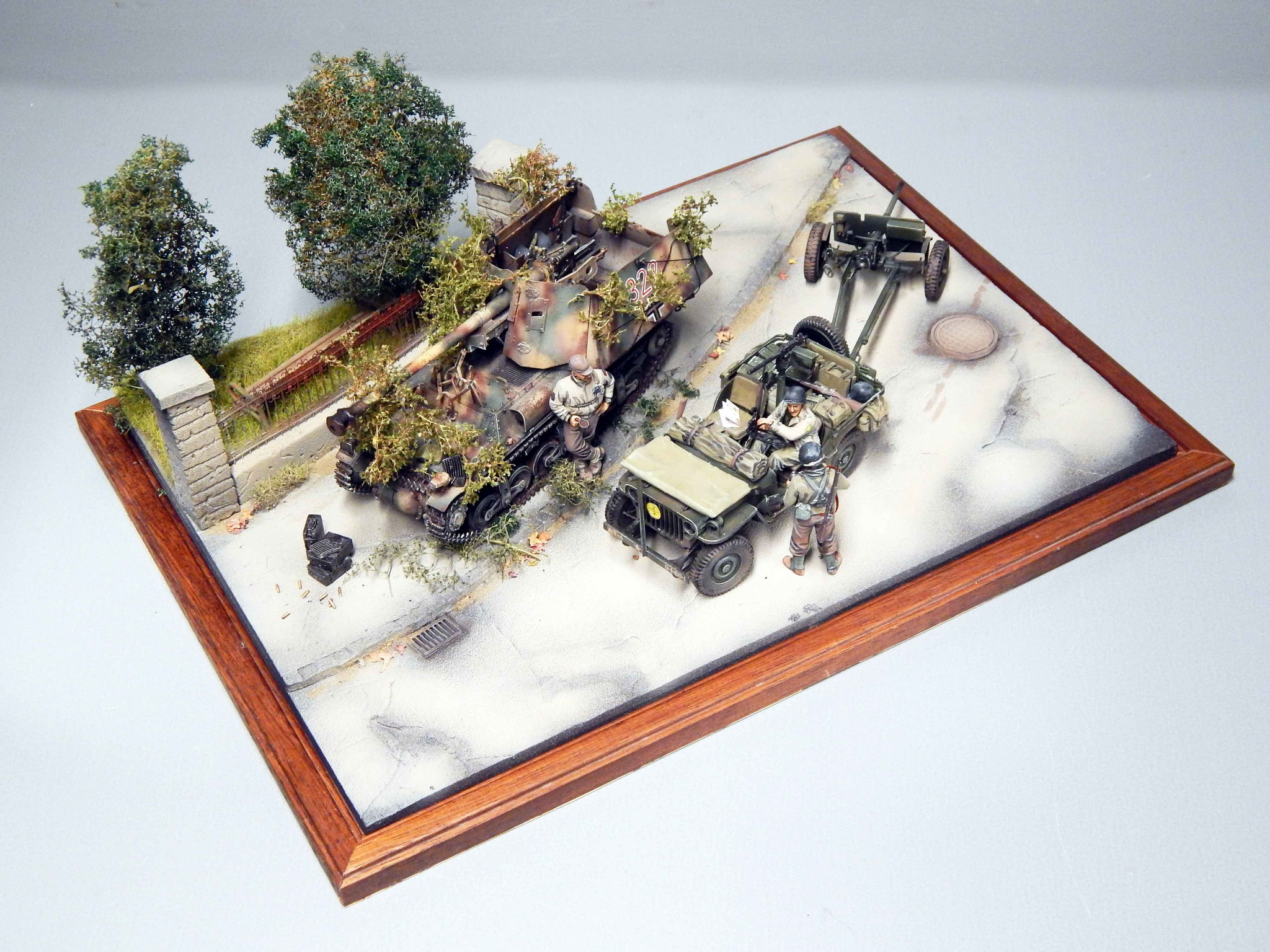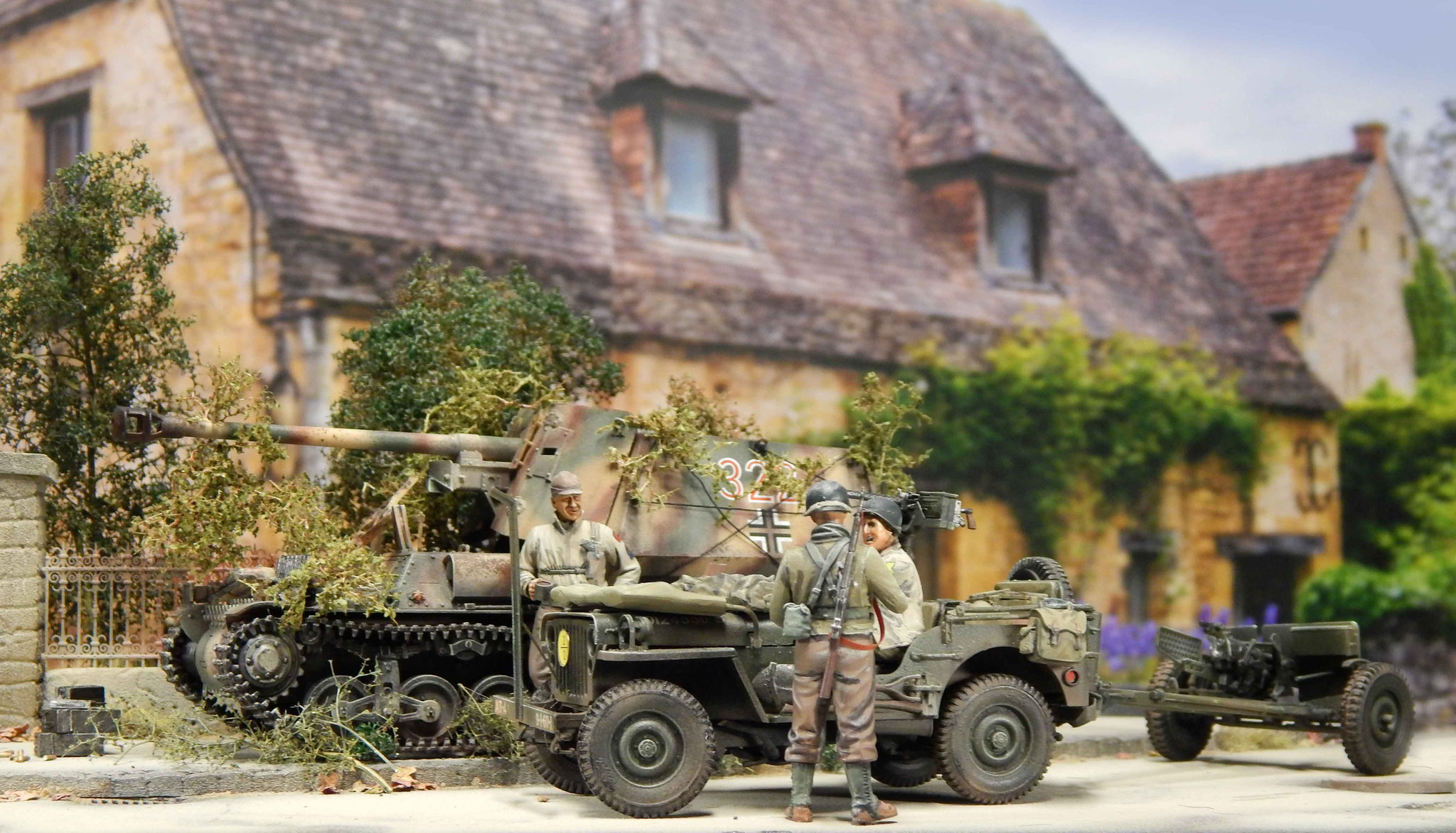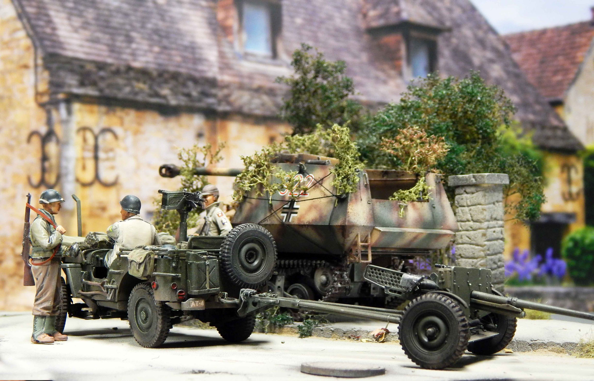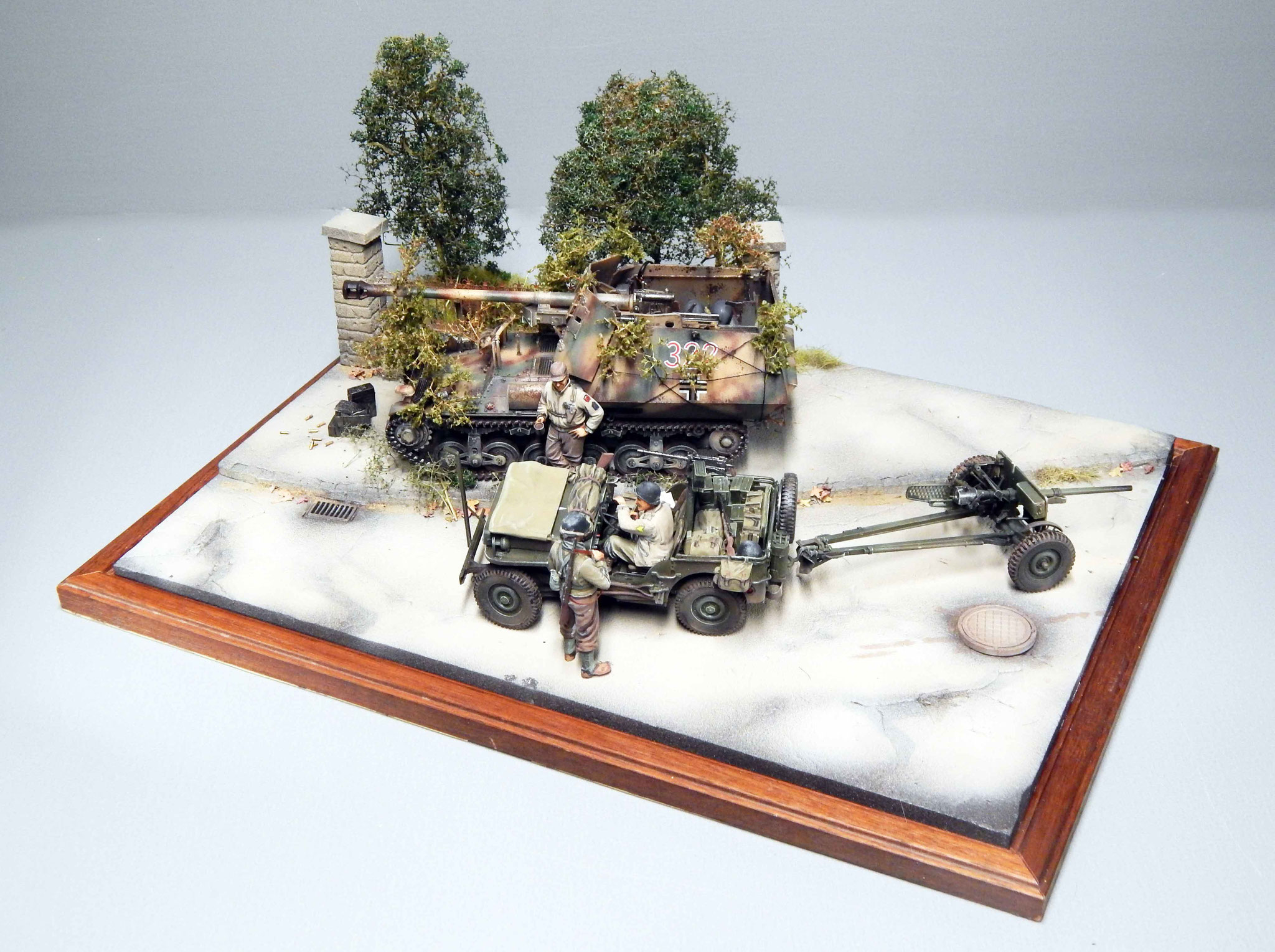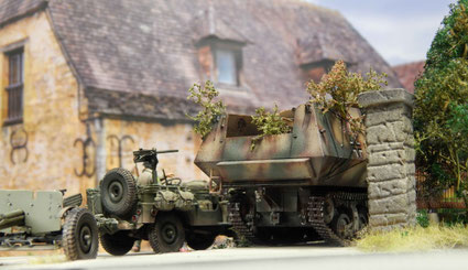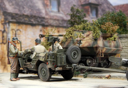 Nebem dem Marder I fährt nun ein Ford GP Jeep mit angehängter M3A1 37mm Pak vor. Figuren von Royal Models ergänzen die Szene.