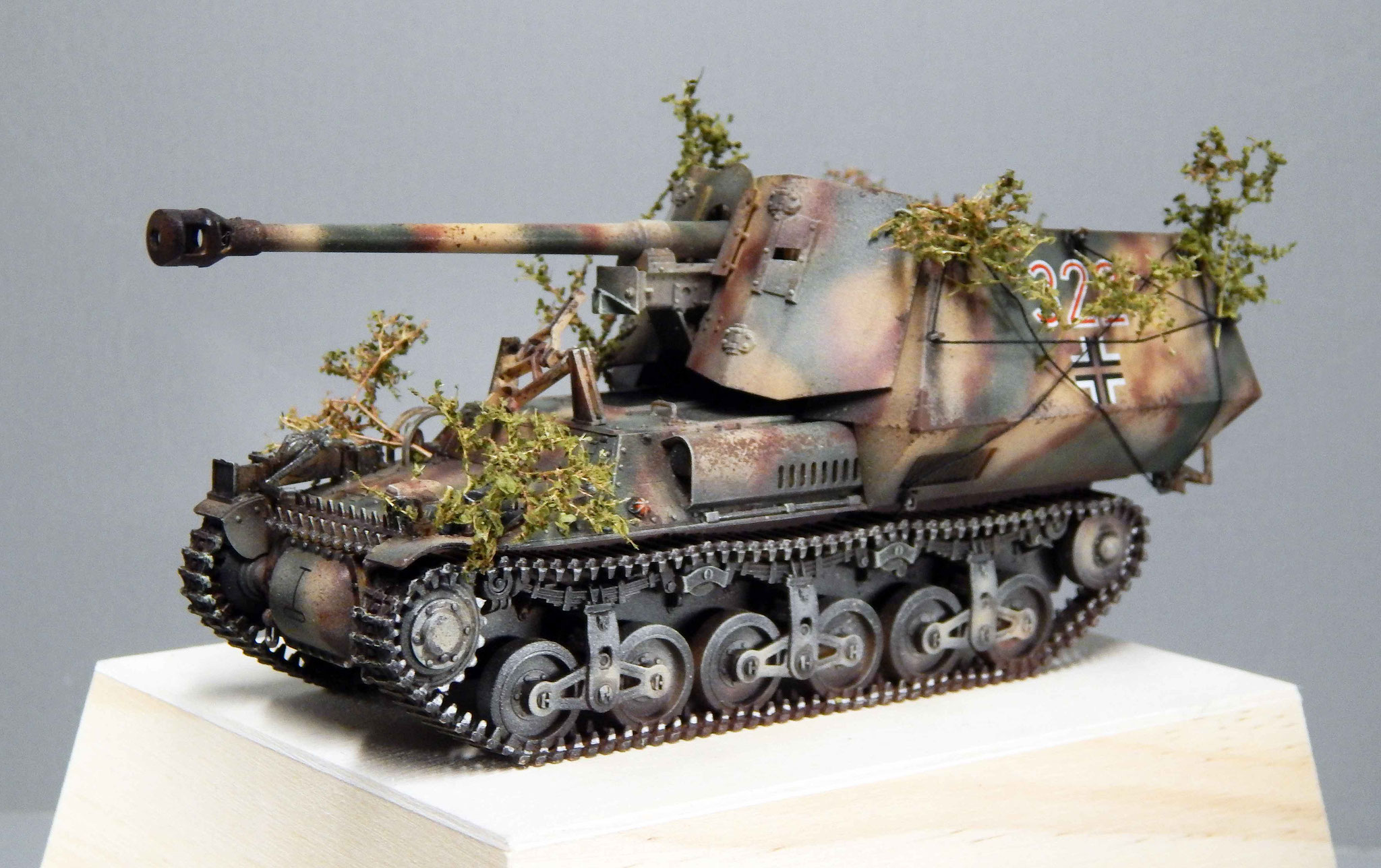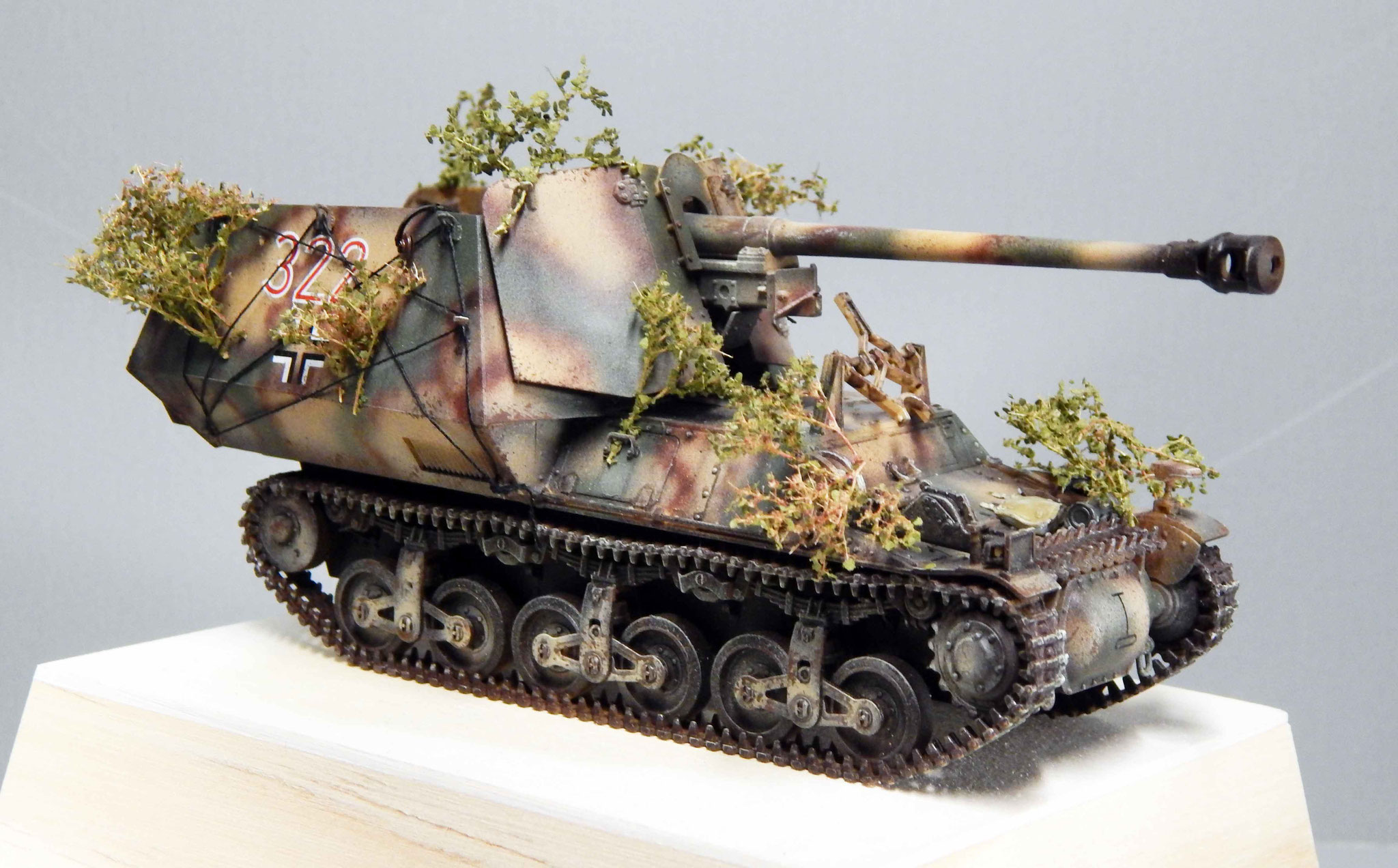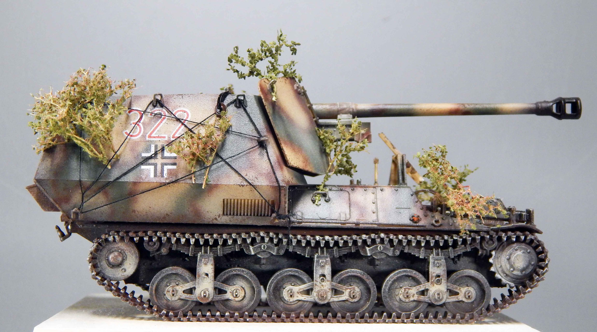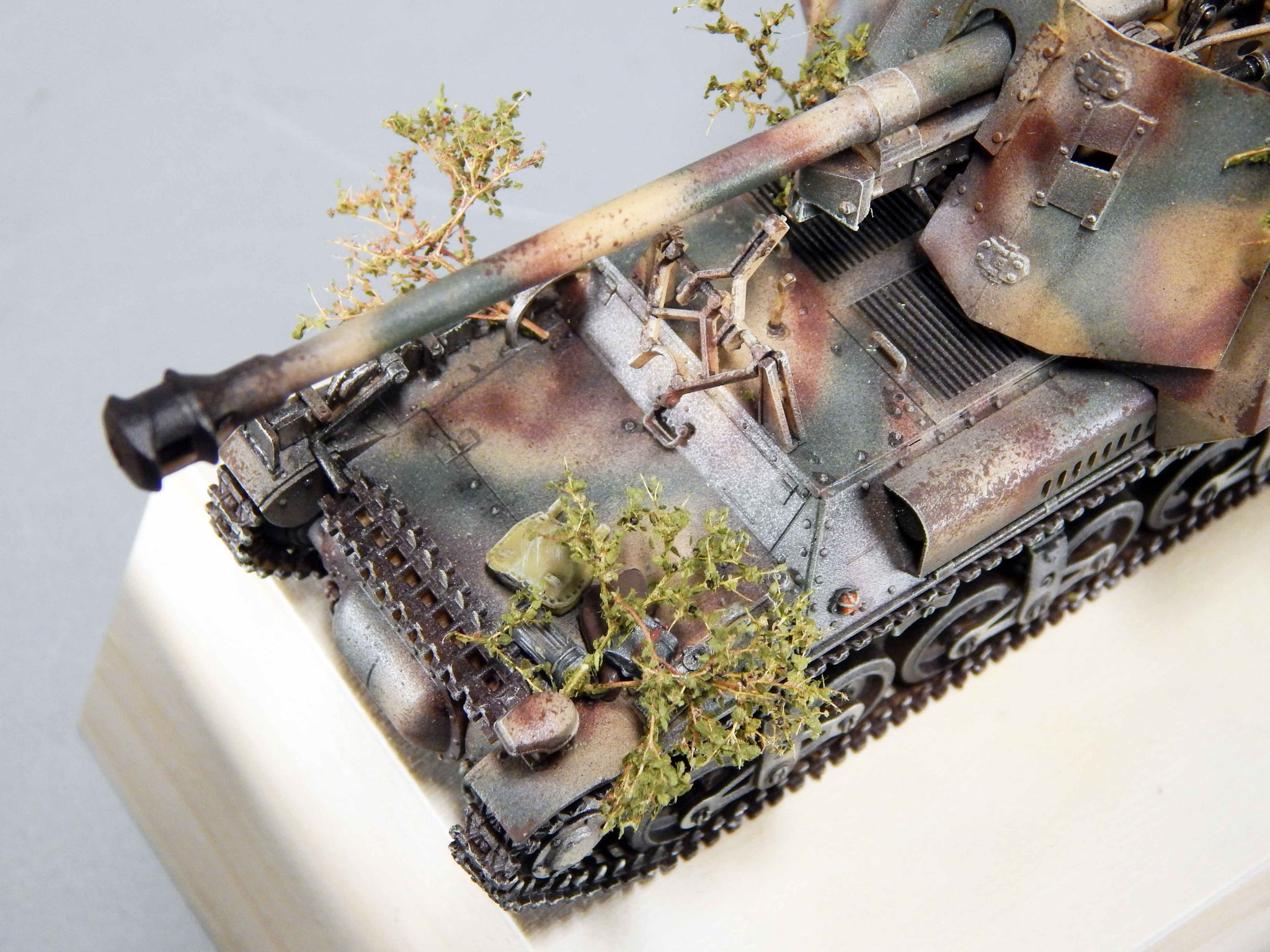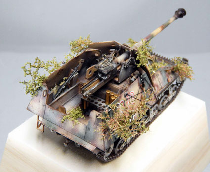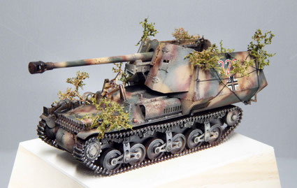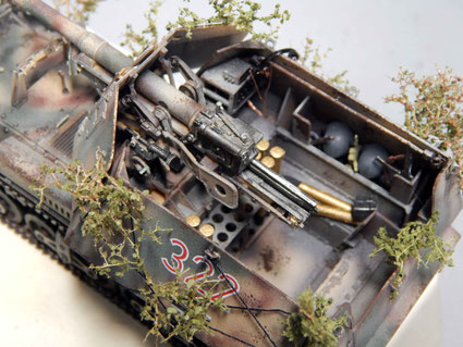 Das Modell wird analog zum Originalbild farbig angelegt. Dazu kommen Tarneinrichtung und kleiner Büsche.