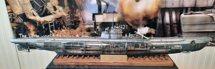 Das VIIC Boot von Trumpeter in 1:48 ist mit rund 140cm Länge auch in diesem Masstab ein Hingucker. Gebaut zusammen mit "Lichtspiel"/Jens Arnold verfügt es über drei Lichtzustände von Alarm, Blaulicht oder Rotlicht, dazu drei Soundclips mit der Titelmusik des Bootes, Alarmtauchen oder Sonargeräusche. Ein perfektes Modell mit über vierzig Figuren. Der Baubericht dazu findet man hier.