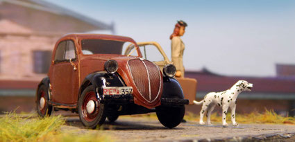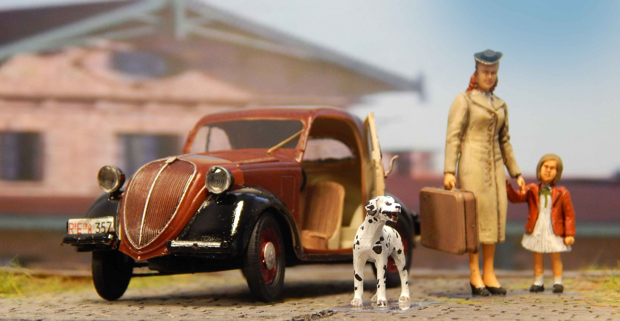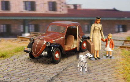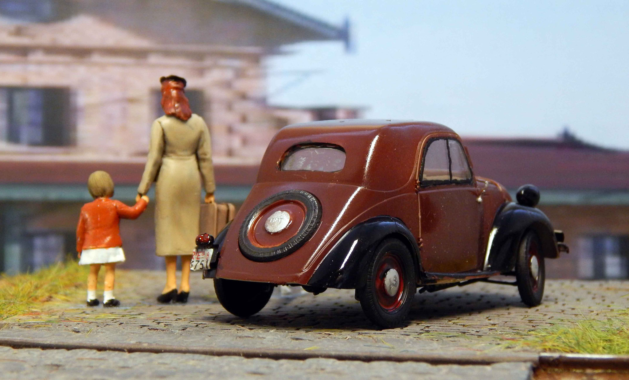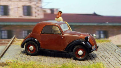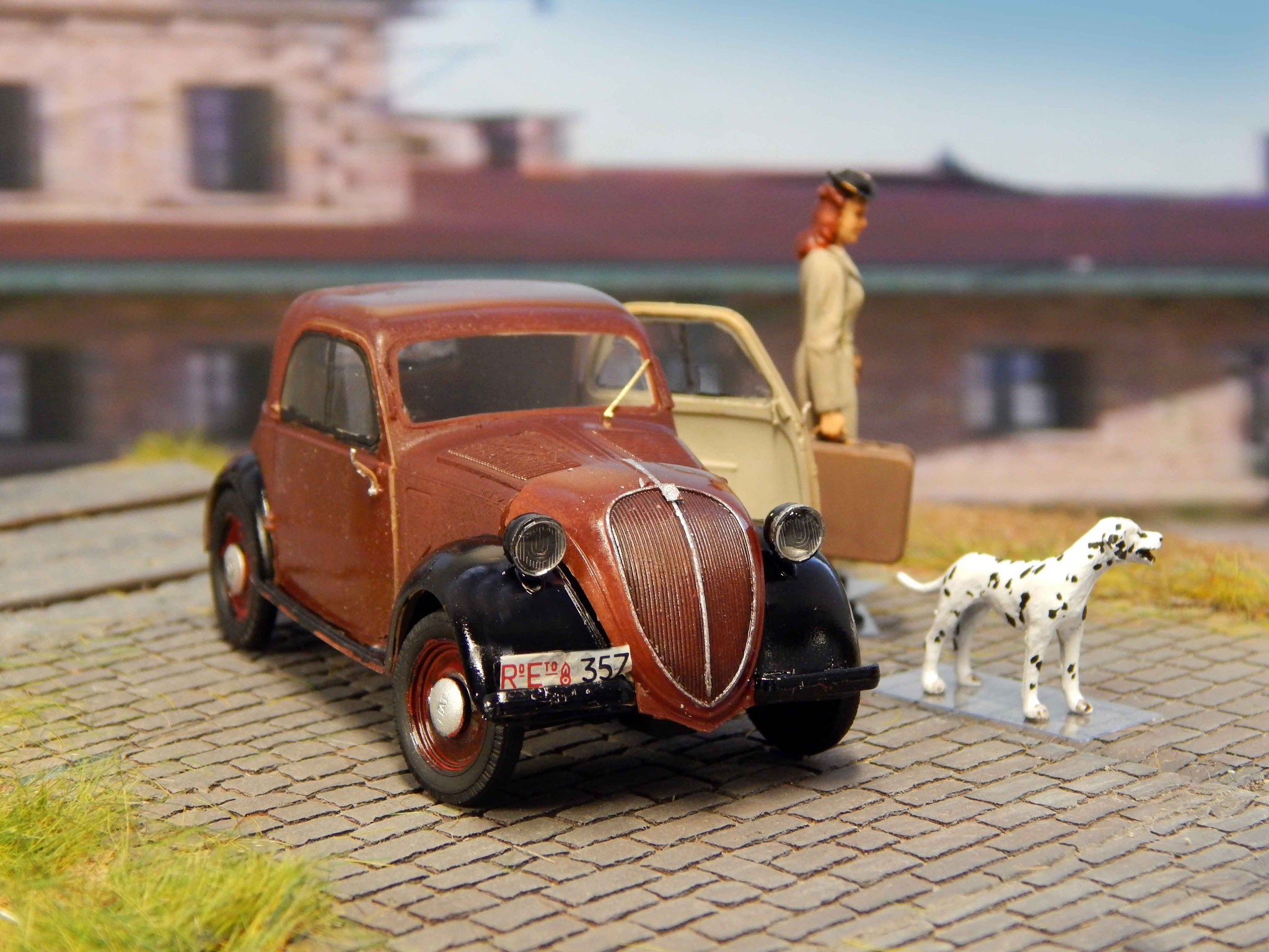 Im Masstab 1:35 hat Bronco einen feinen wenn auch sehr filigranen Bausatz des kleinen italienischen Zweisitzers als Zivilfahrzeug herausgebracht. Dazu gibt es eine kleine Figurengruppe mit Mutter und Tochter und einem Dalmatiner, eine schöne Idee als sportliches Reisemobil.