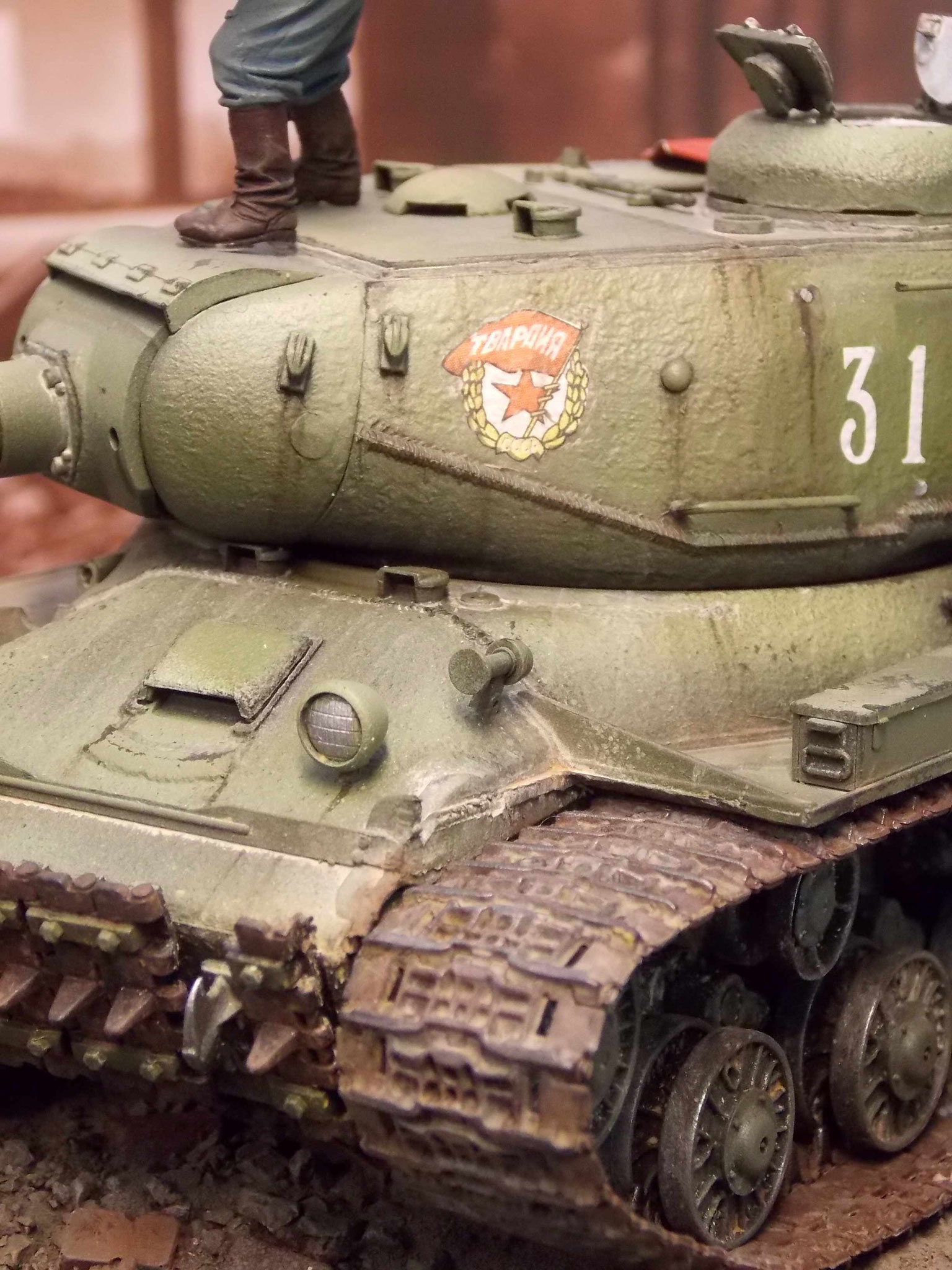Das Heck des JS-2 ist mit einer Vielzahl von Ausrüstunggegenständen, Munitionskisten etc. "geschmückt".