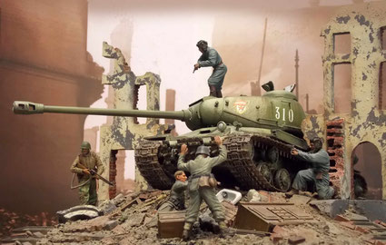 ich erwarb das fertige Diorama für meine Sammlung. Ein schön detaillierter JS-2 mit exzellenter Patina auf der klassischen Verlinden-Basis mit außerordentlich gut bemalten Figuren.