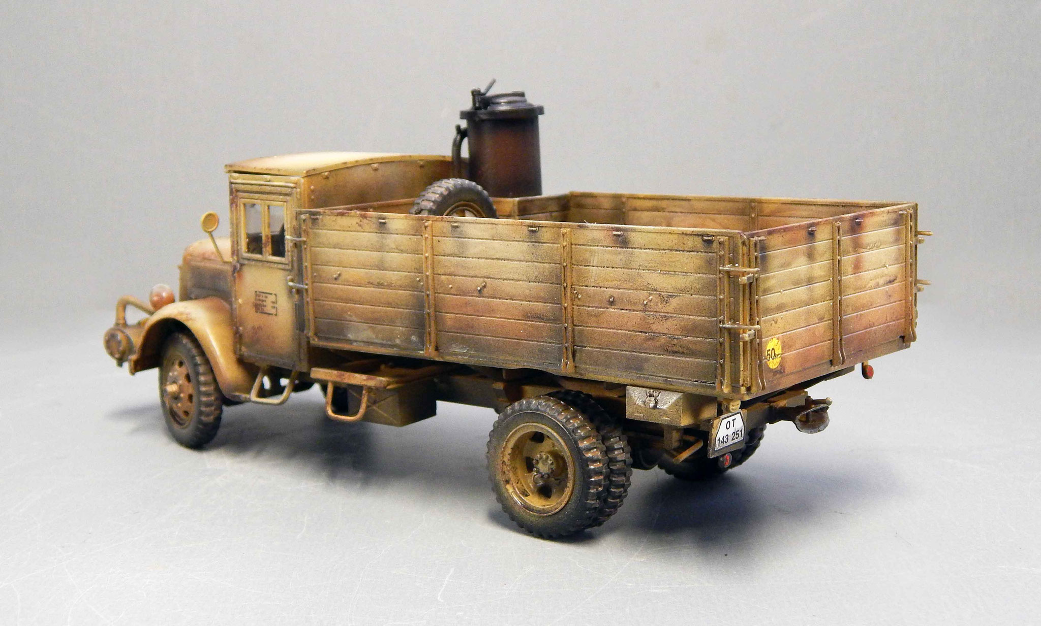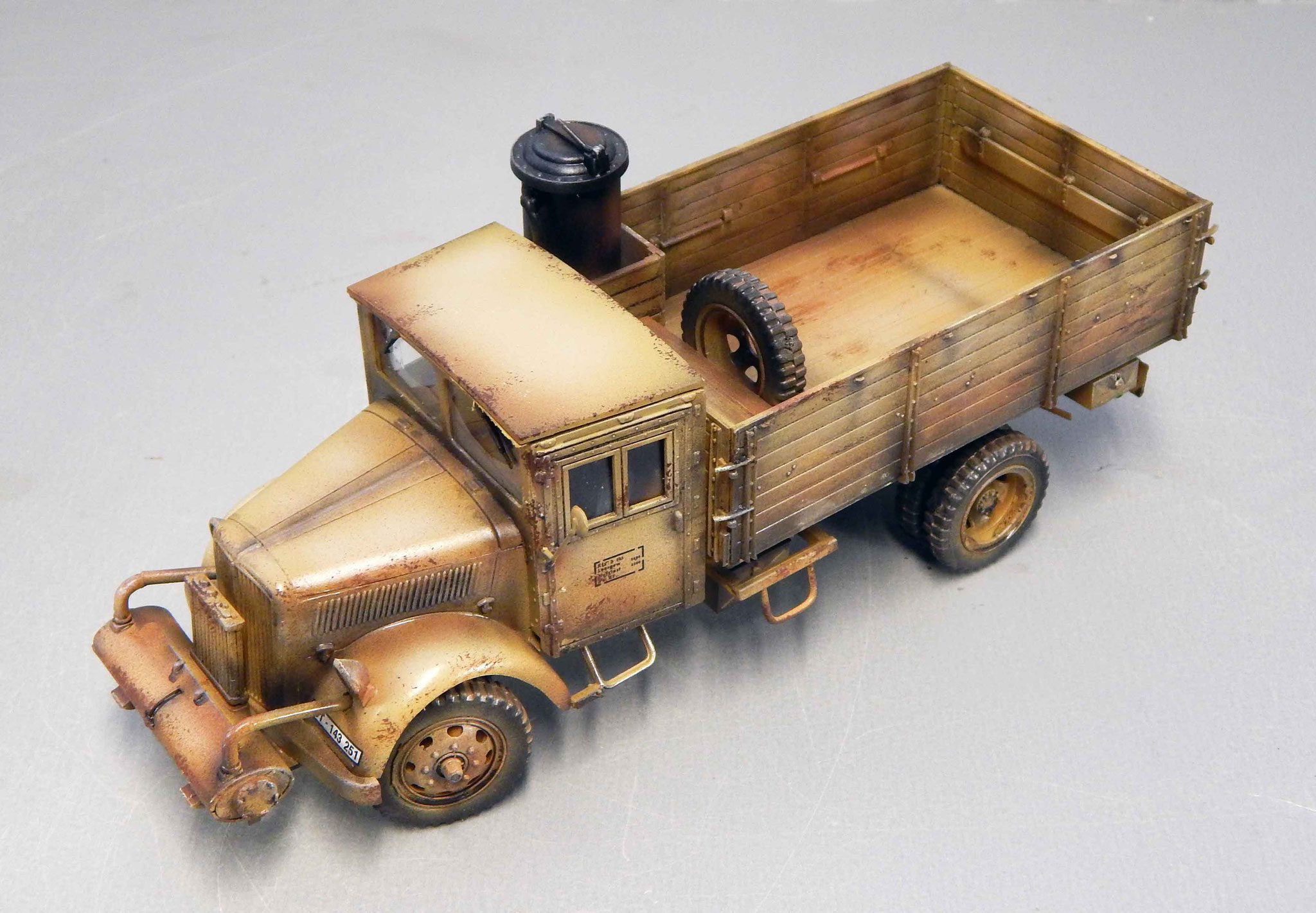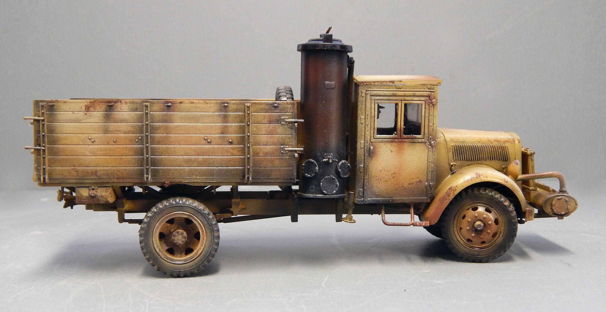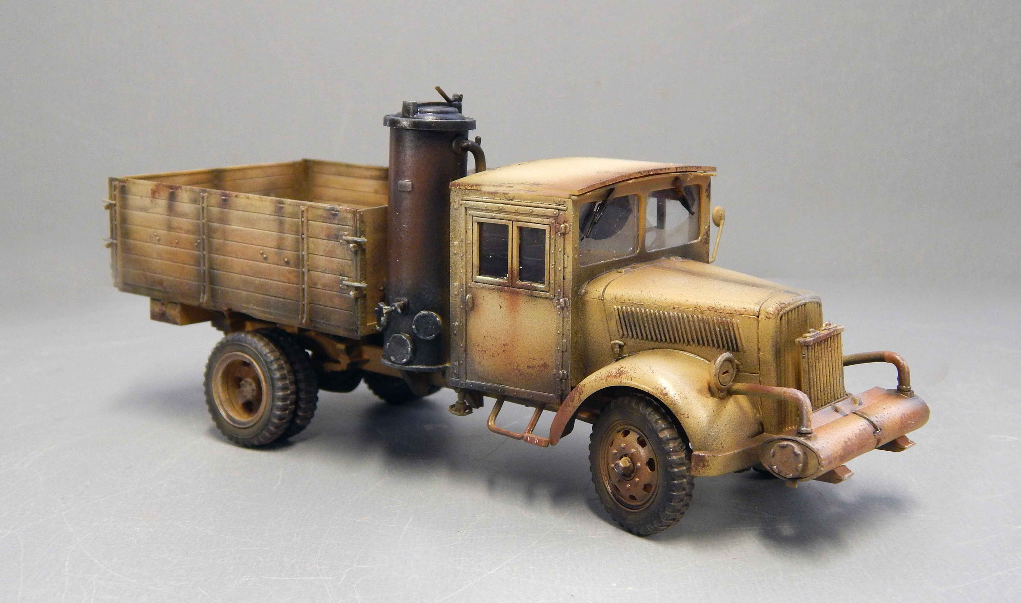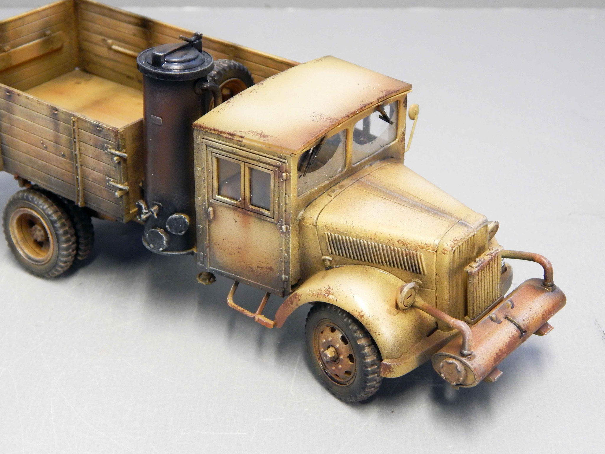 Das erste Fahrzeug, was zum Thema "Fahren mit Holzgas" erstellt wird, ist der altbekannte, aber heute äußerst selten zu bekommende Bausatz des Opel Blitz mit Holzgasanlage von Italerie.