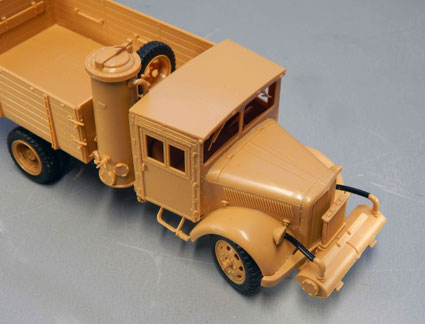Ers ist einfach zu bauen, hat aber die markanten Umbauten gegenüber der Serienversion, wie den Erker in der Ladefläche für den Holzbrennkessel.
