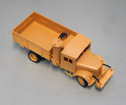 So haben wir nun zwei Fahrzeuge für das Thema auf dem Diorama: einen VW Kübelwagen mit Holzgasantrieb (fertig aus meiner Sammlung) und den Rohbau des Opel Blitz. Bleibt also etwas Platz drumherum für passenden Figuren.