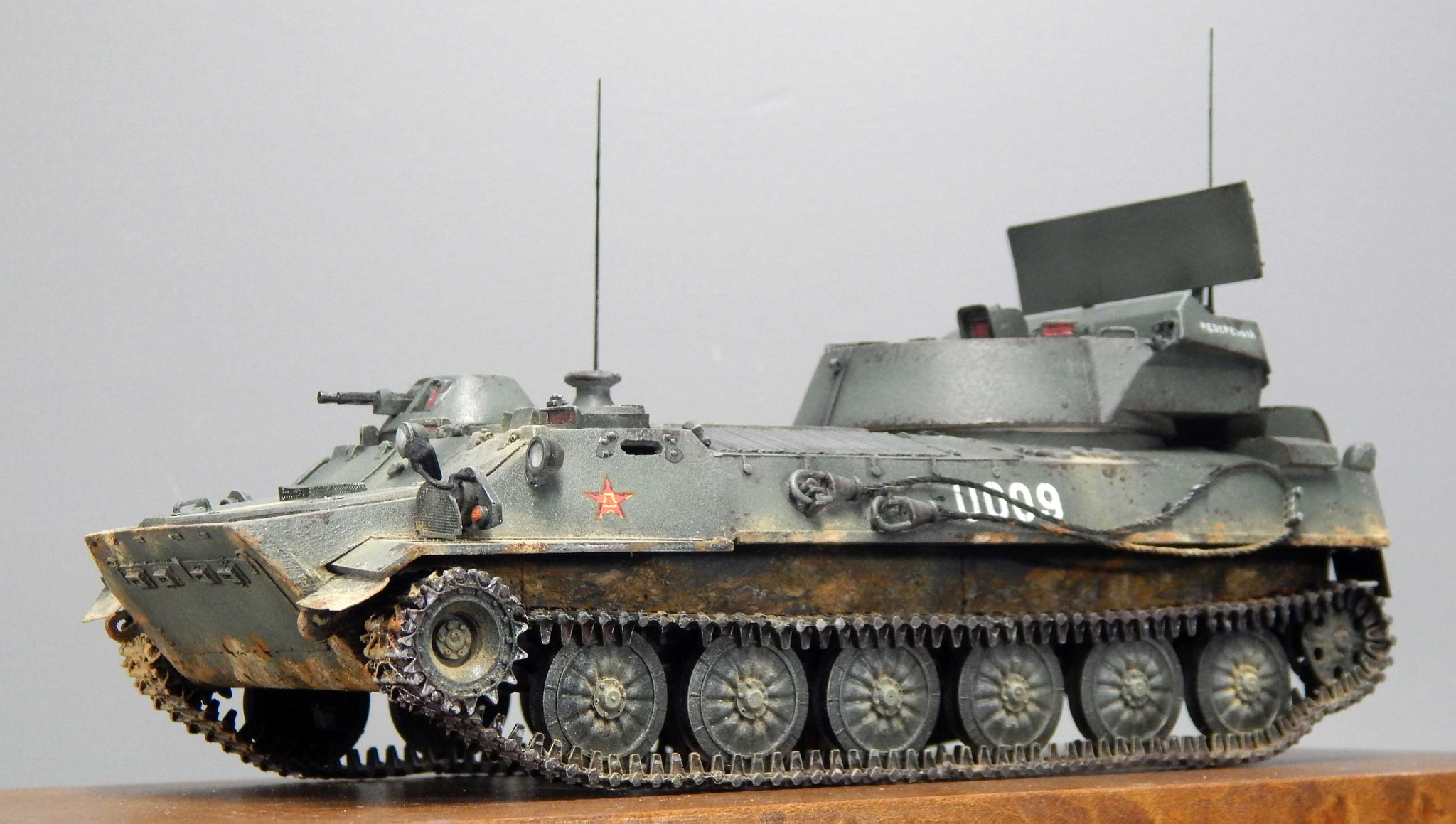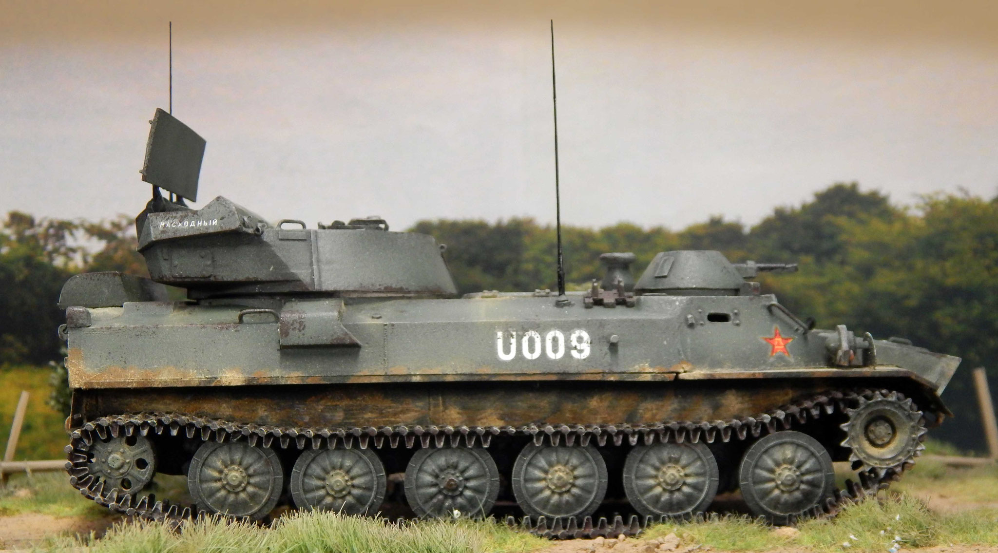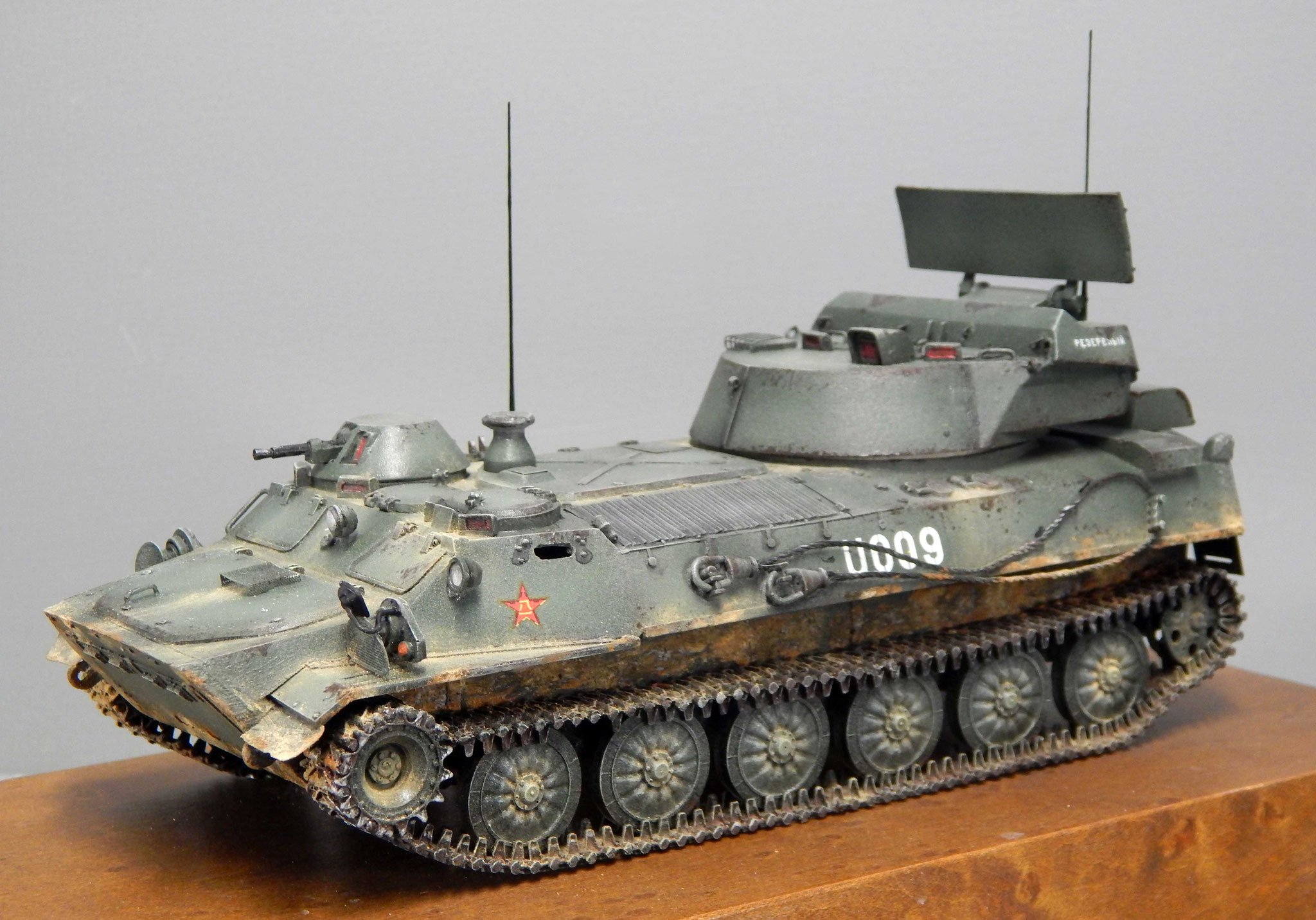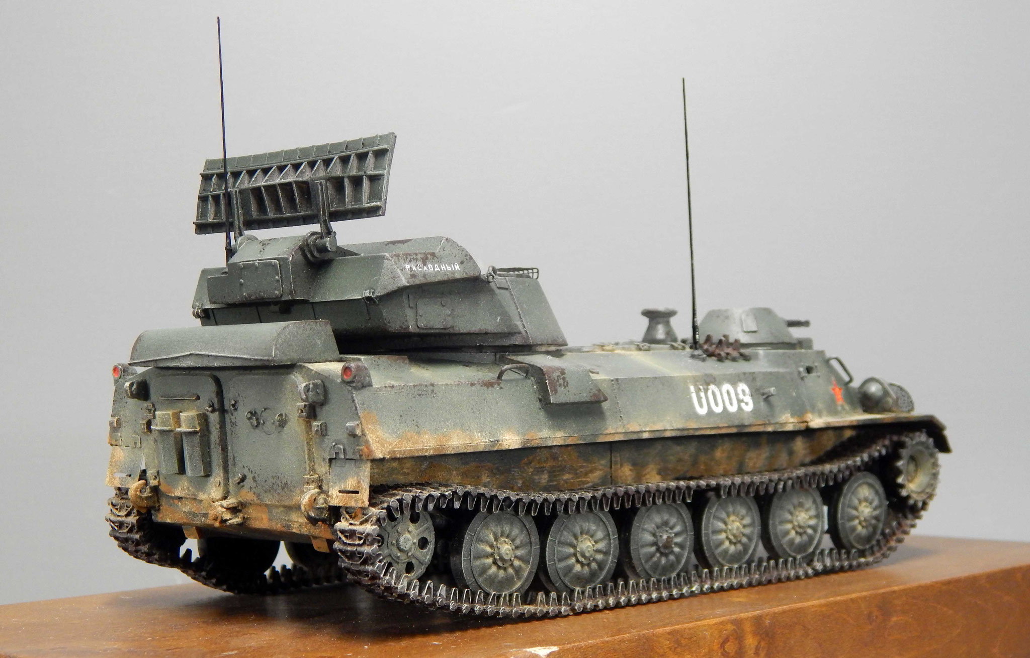 Das System sollte funktional die AFMS-10 ersetzen. Dabei sollten sowohl die elektronischen Baugruppen, als auch das Fahrgestell neu entwickelt werden. Zunächst sollte die Station auf dem Chassis des Schützenpanzers BMP-1 aufgebaut werden. Im Laufe der Entwicklung ergaben sich jedoch Schwierigkeiten sowohl im elektronischen Teil, als auch mit dem vorgesehenen Chassis. Das für die Produktion des Fahrgestells vorgesehene Tscheljabinsker Traktorenwerk lehnte die Nutzung des Chassis des BMP-1 kategorisch ab. Dies verzögerte die Entwicklung nachhaltig. Erst 1969 wies der Generalstab der Streitkräfte der UdSSR an, das Chassis des Artillerieschleppers MT-LB zu nutzen.[4] Die staatliche Erprobung des Systems begann, wie vorgesehen, 1970 auf dem Schießplatz Smolino (Смолино) (Oblast Nischni Nowgorod) und konnte am 30. Dezember dieses Jahres erfolgreich abgeschlossen werden. Im Folgejahr wurde die Station in die Bewaffnung der Sowjetarmee aufgenommen.