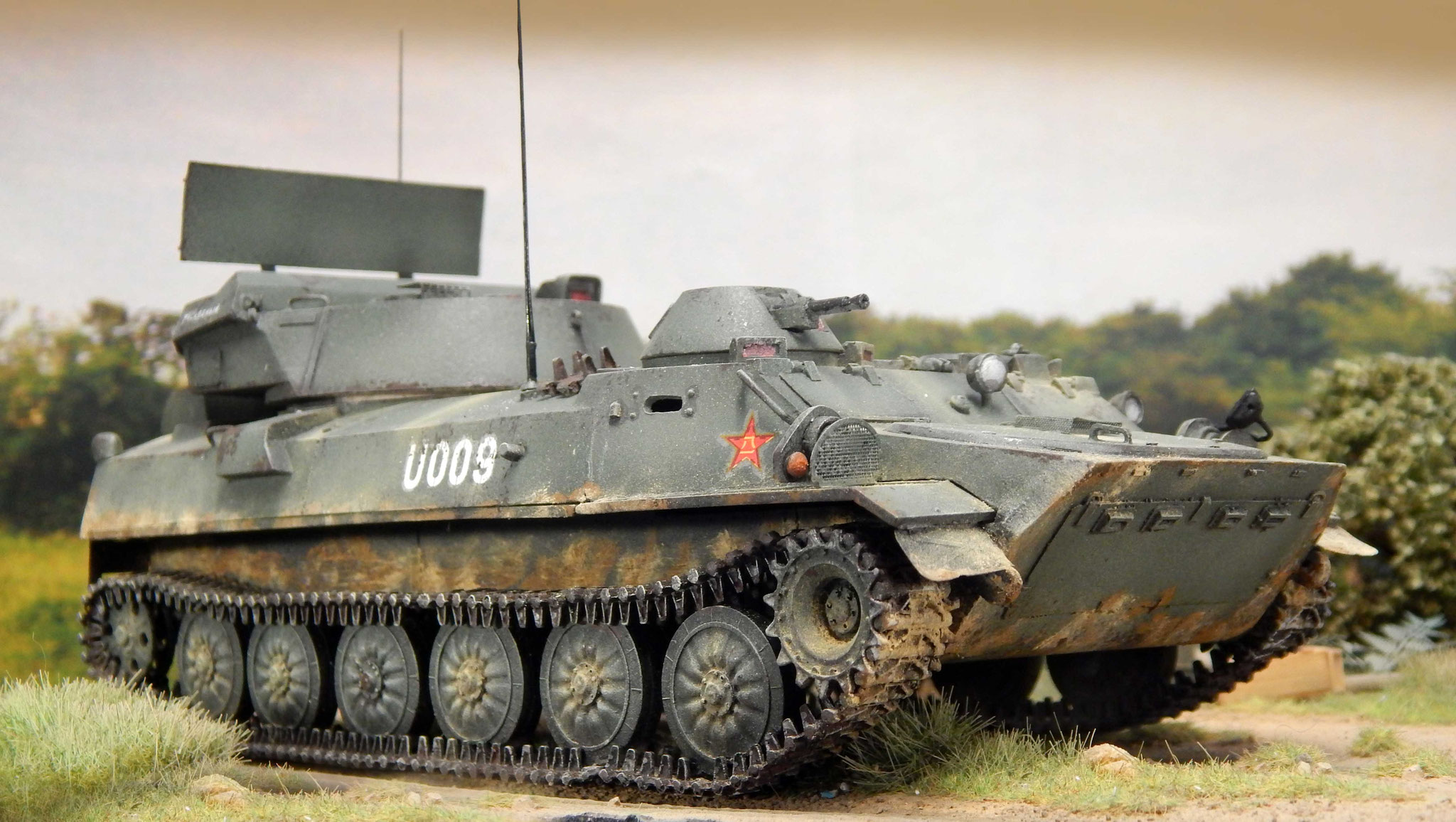 Zur Nahverteidigung ist vom Schützenpanzer-Grundmuster der vordere Einmannturm mit dem 12,7mm-MG noch erhalten.