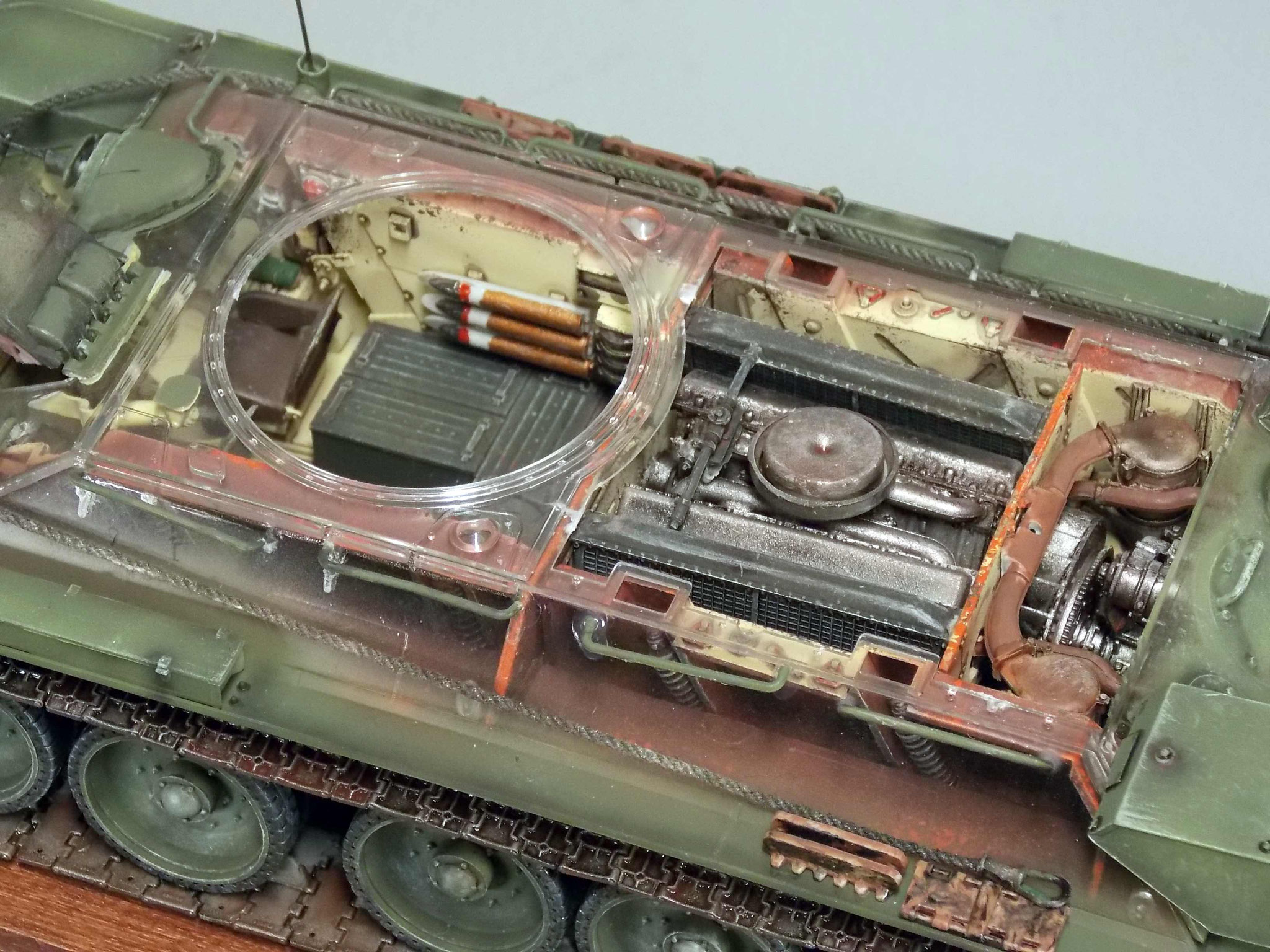 So kann man Turm und Klarsichteile alle einzelnen abnehmen und auf so auf Entdeckungsreis in das Innere des T-34 gehen.