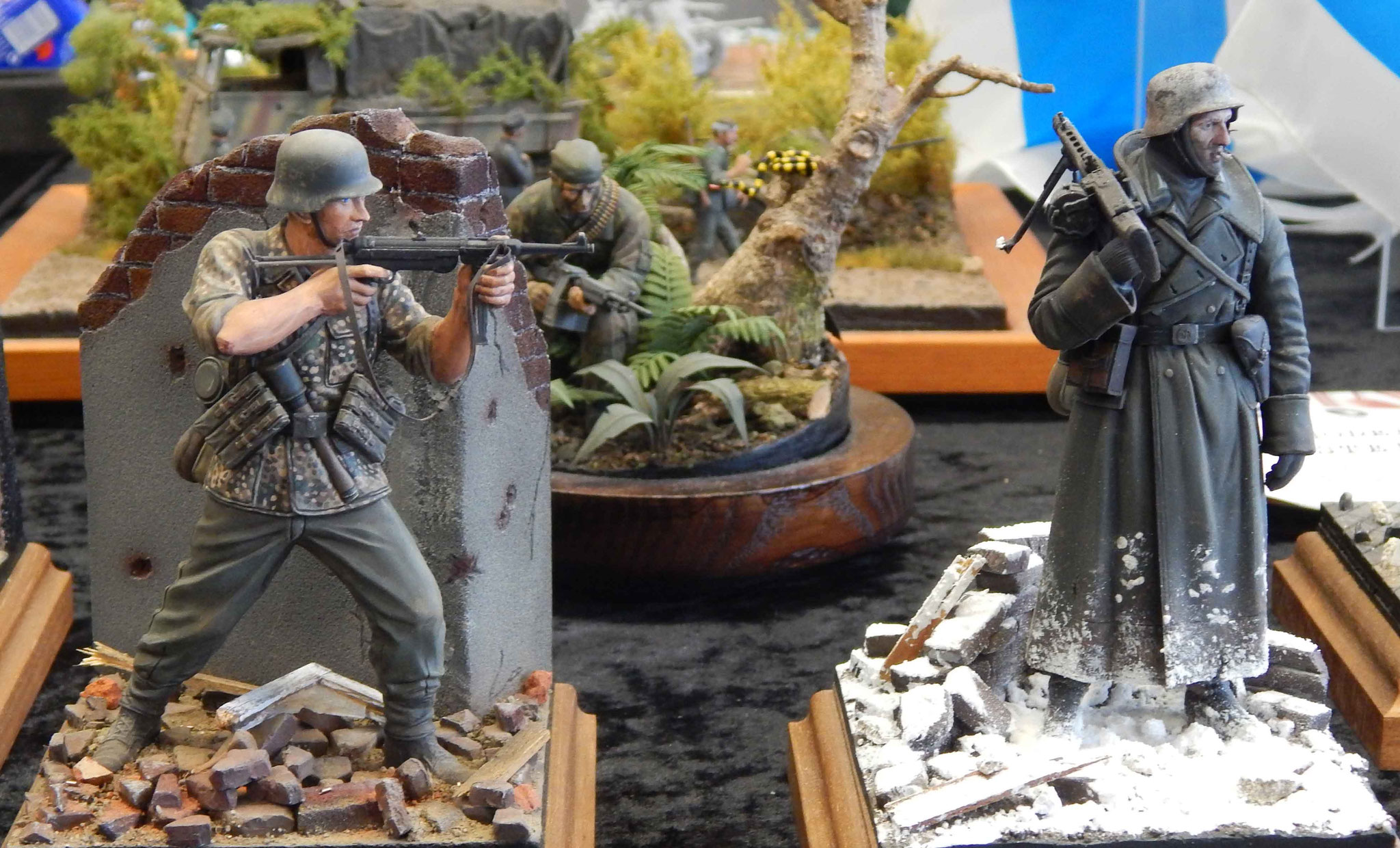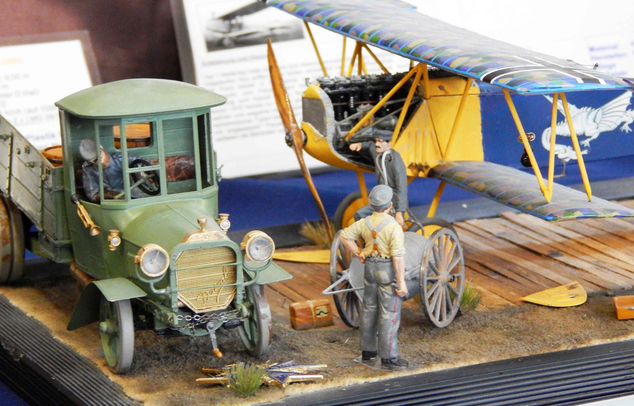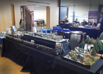 Ich hatte mich zusammen mit meinen "Kollegen" vom Modellbauteam Düsseldorf angemeldet, um aber mehr Tischfläche zu bekommen mit meinem Label einen eigenen Doppeltisch bezogen. Hier konnte ich neben dem neuen "Olympic"-Diorama auch einige andere Exponate anderer Kategorien wie das Mistelgespann in 1:32 zeigen.
